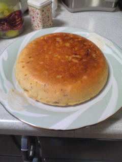 3.内釜にマーガリン(かバター)を塗り、2の生地を入れ、炊飯を押す。