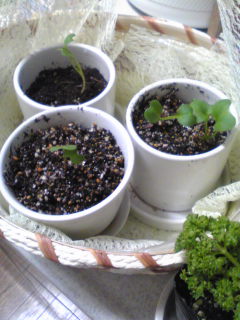 種をまき、キッチンの出窓に!
