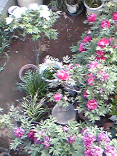 ベランダから下を見てみたら、牡丹が咲き乱れてた。